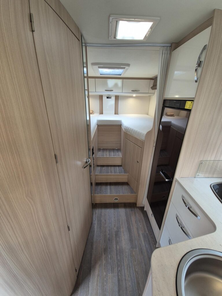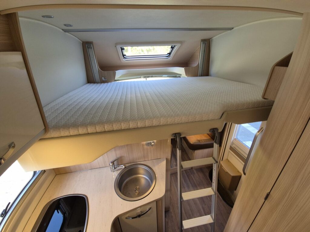 De Bürstner Ixeo IT 726 biedt slaapplaatsen voor 4 personen, twee lengtebedden van 85x200cm met heerlijke matrassen en een hefbed van 145x205cm. Het matras van het hefbed is praktisch nooit gebruik!