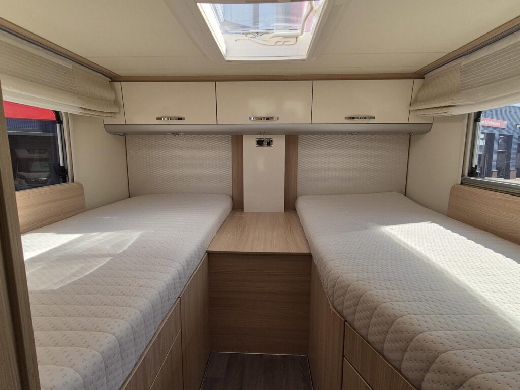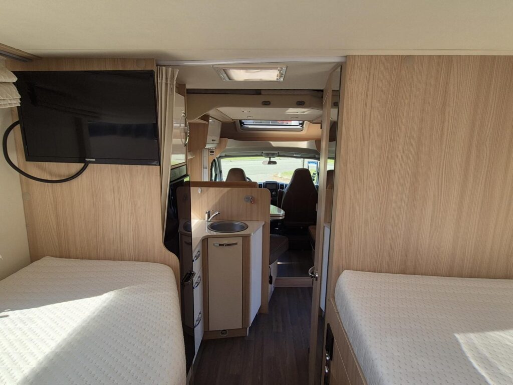 Luxe Bürstner camper met twee enkele bedden met heerlijke matrassen. Daarnaast beschikt deze camper over een elektrisch hefbed. Mooie camper met de nieuwste uitgevoerde brede toegangsdeur. De camper is per direct beschikbaar!!