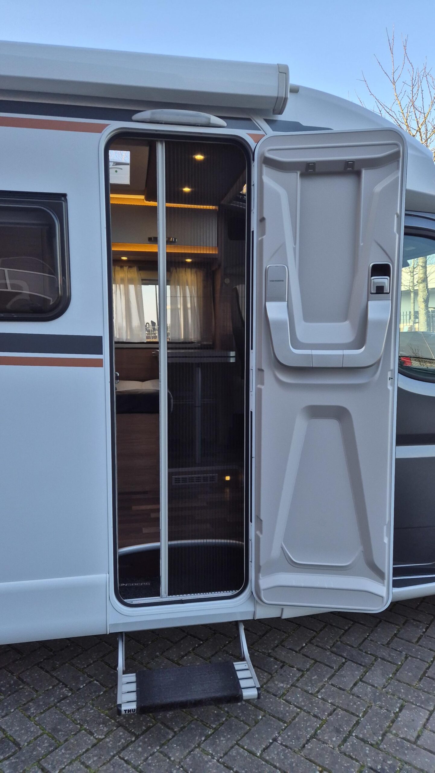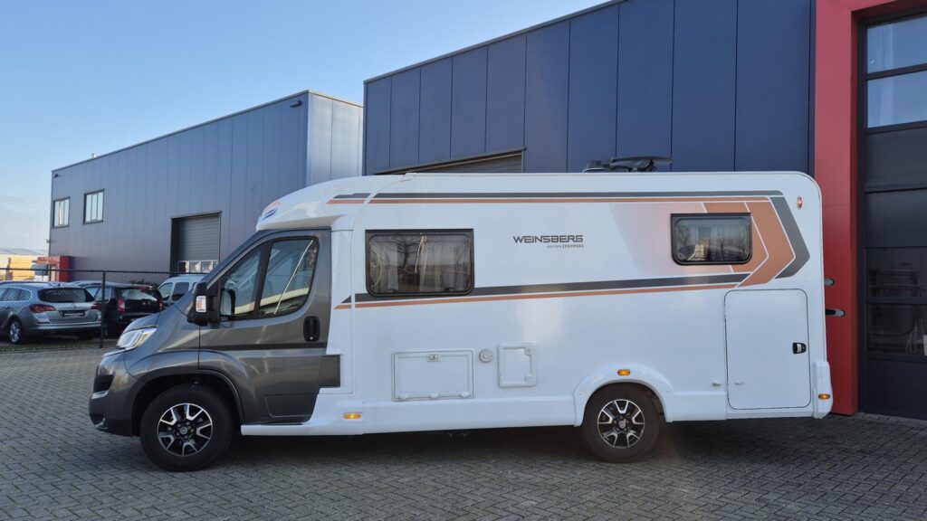 Om de Weinsberg een uniek karakter te geven, heeft de vorige eigenaar de cabine in 2024 laten wrappen met donker grijze folie.